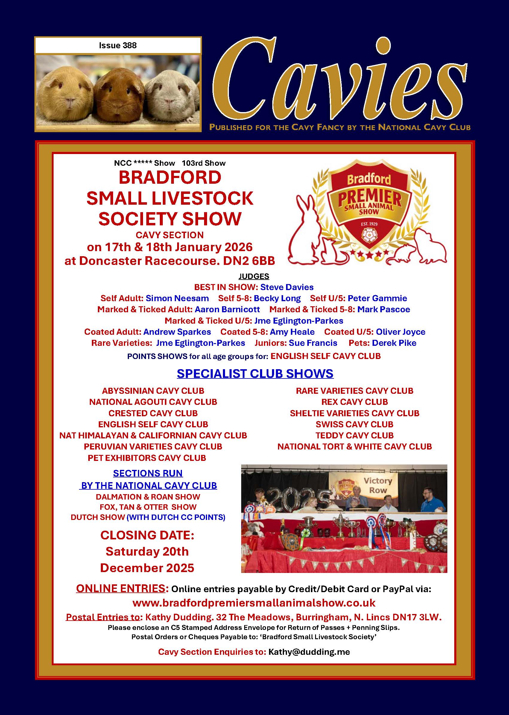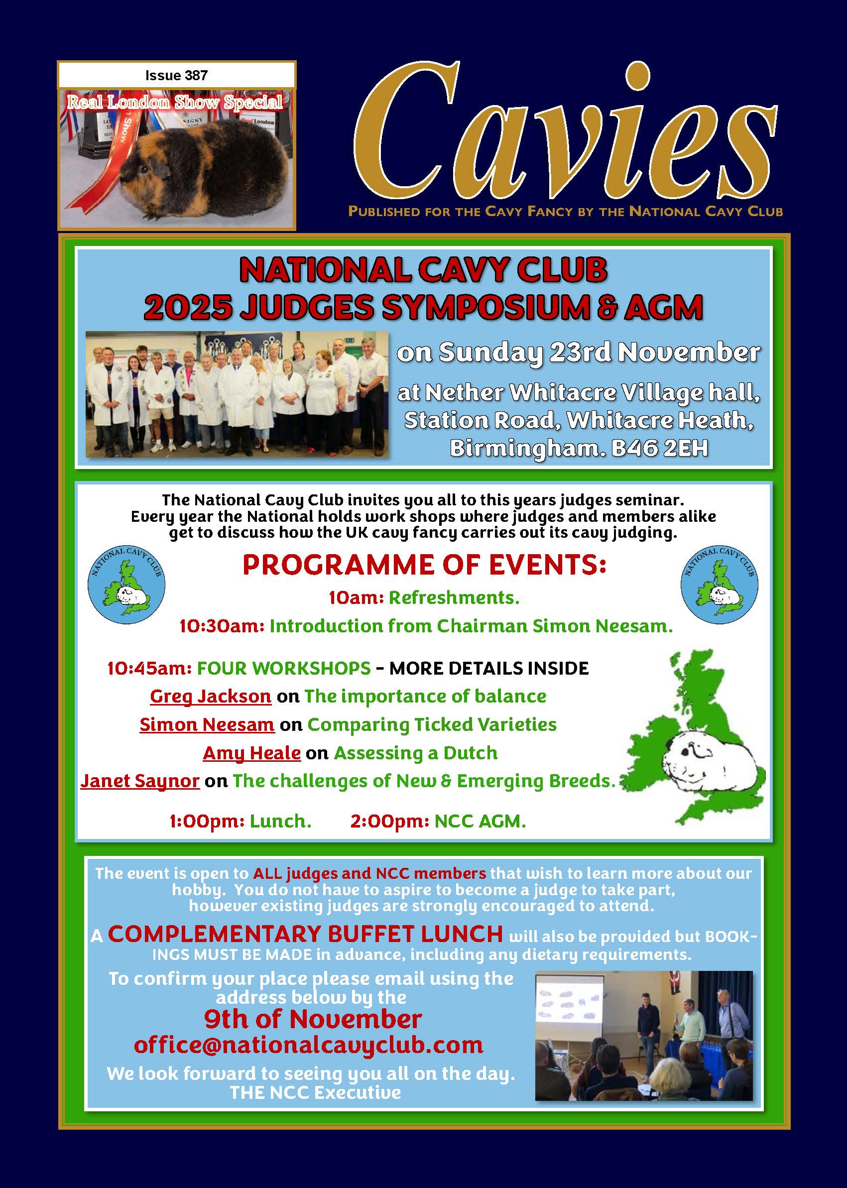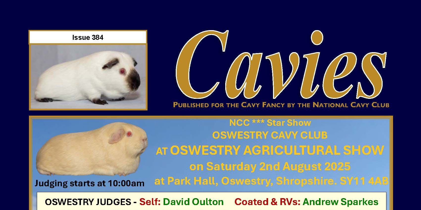 Sunday 23rd November 2025 – Nether Whitacre Village Hall, Station Road, Whitacre Heath, Birmingham, B46 2EH The National Cavy Club invites all its members (whether existing judges, aspiring judges, or just plain interested!), to attend the ever popular 2025 Judging Seminar and AGM PROGRAMME FOR THE DAY’S EVENTS Teas and coffee at 10:00 for a…